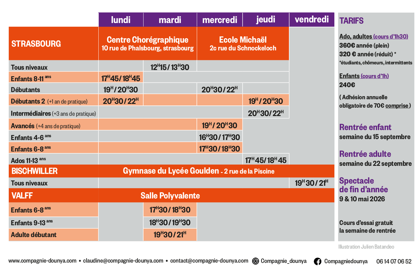 La saison 2025-26 est déjà programmée, retrouvez les dates, horaires et tarifs de septembre sur la page inscription